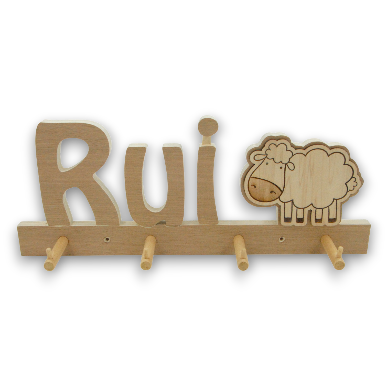 Houten kapstok met schaap in multiplex met fineerlaag eik.