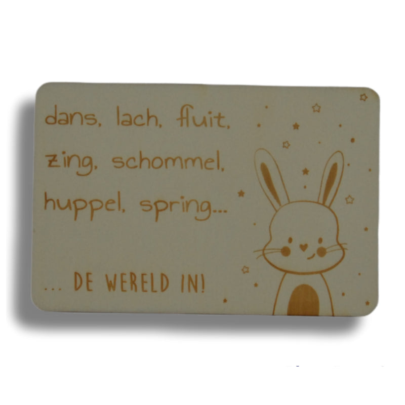 Houten kaart: dans, lach, fluit, zing, schommel, huppel, spring ... De wereld in!